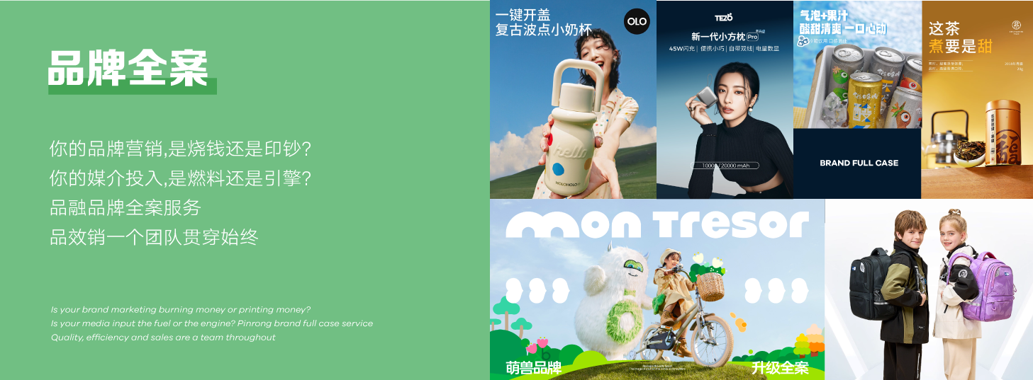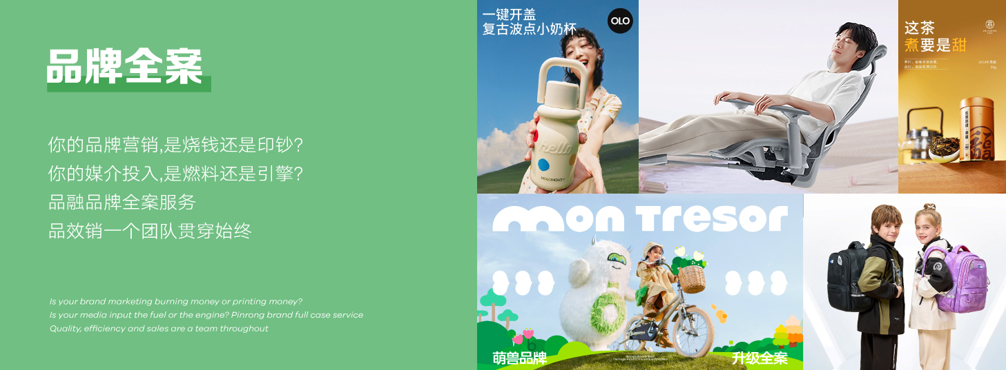 品融电商是国内唯二的集品牌策略、视觉创意、媒介投放、电商全域运营为一体的品牌全案孵化服务商。业务涵盖战略定位、开品策略、传播策略、创意设计、媒介规划、媒介投放、财务规划和全域电商运营,已孵化数十个细分类目第一案例,开创「效品合一 • 全域增长 」方法论,在经济下行和行业极度内卷时代,驱动品牌高质长效增长。