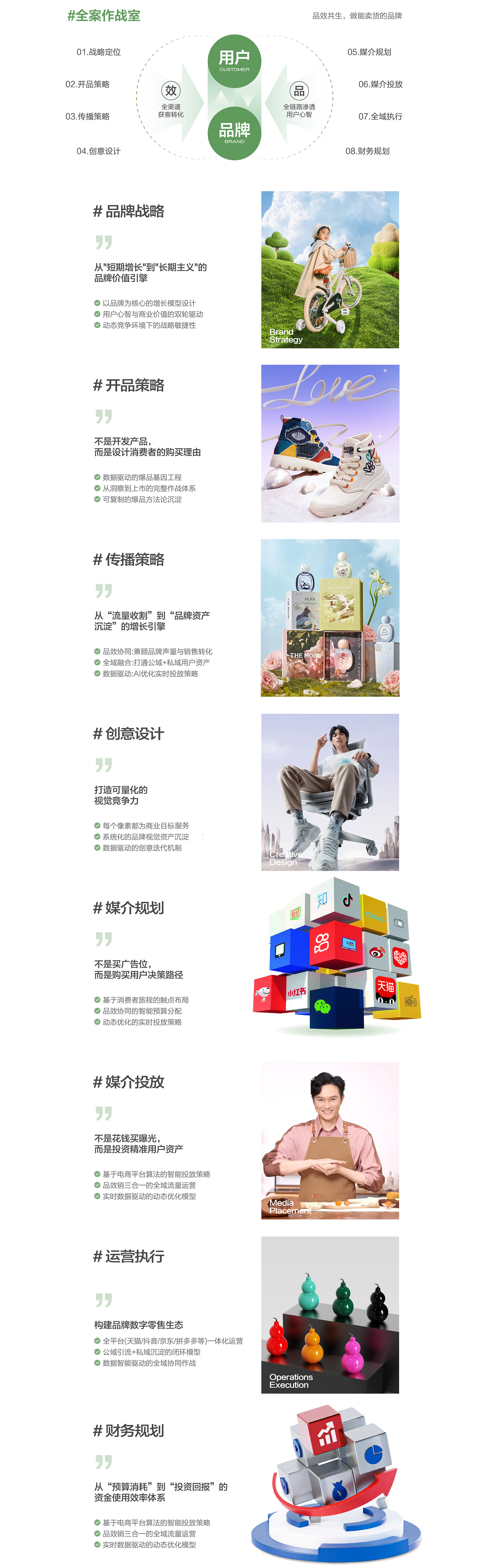 品融电商-品牌全案品融电商是国内唯二的集品牌策略、视觉创意、媒介投放、电商全域运营为一体的品牌全案孵化服务商。业务涵盖战略定位、开品策略、传播策略、创意设计、媒介规划、媒介投放、财务规划和全域电商运营,已孵化数十个细分类目第一案例,开创「效品合一 • 全域增长 」方法论,在经济下行和行业极度内卷时代,驱动品牌高质长效增长。