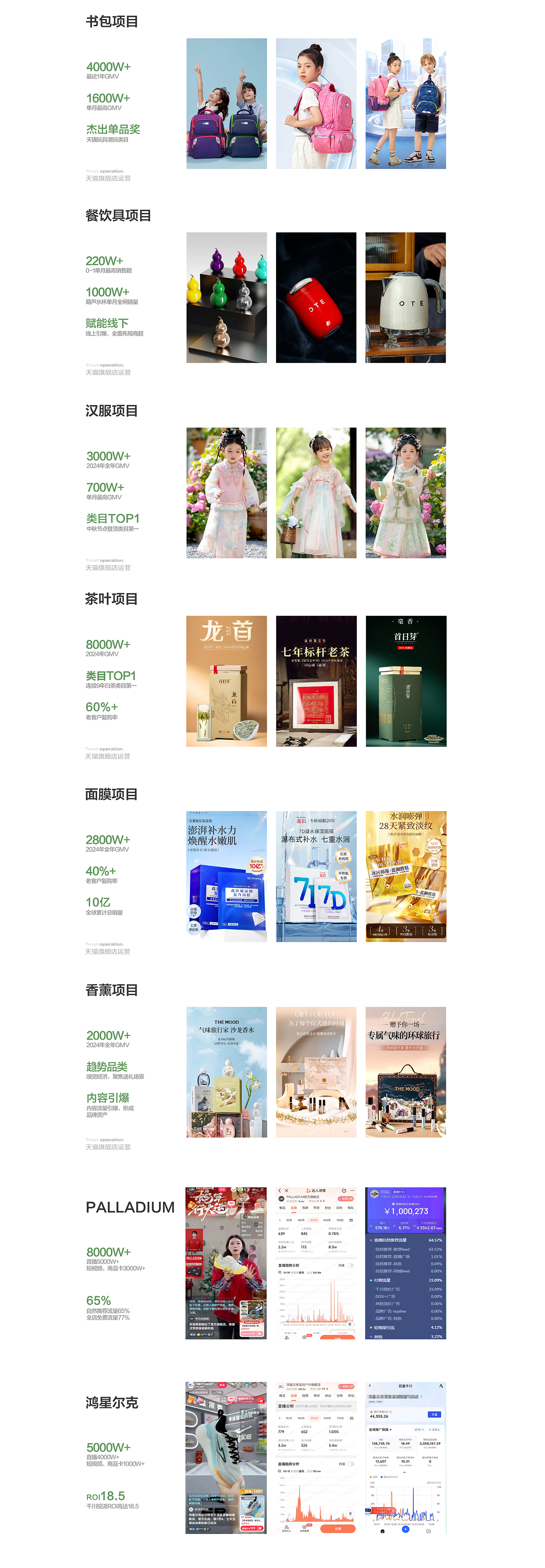 打造一站式的天猫/京东/拼多多/抖音/小红书/视频号/有赞等国内主流平台的运营服务,助力品牌快速成长!